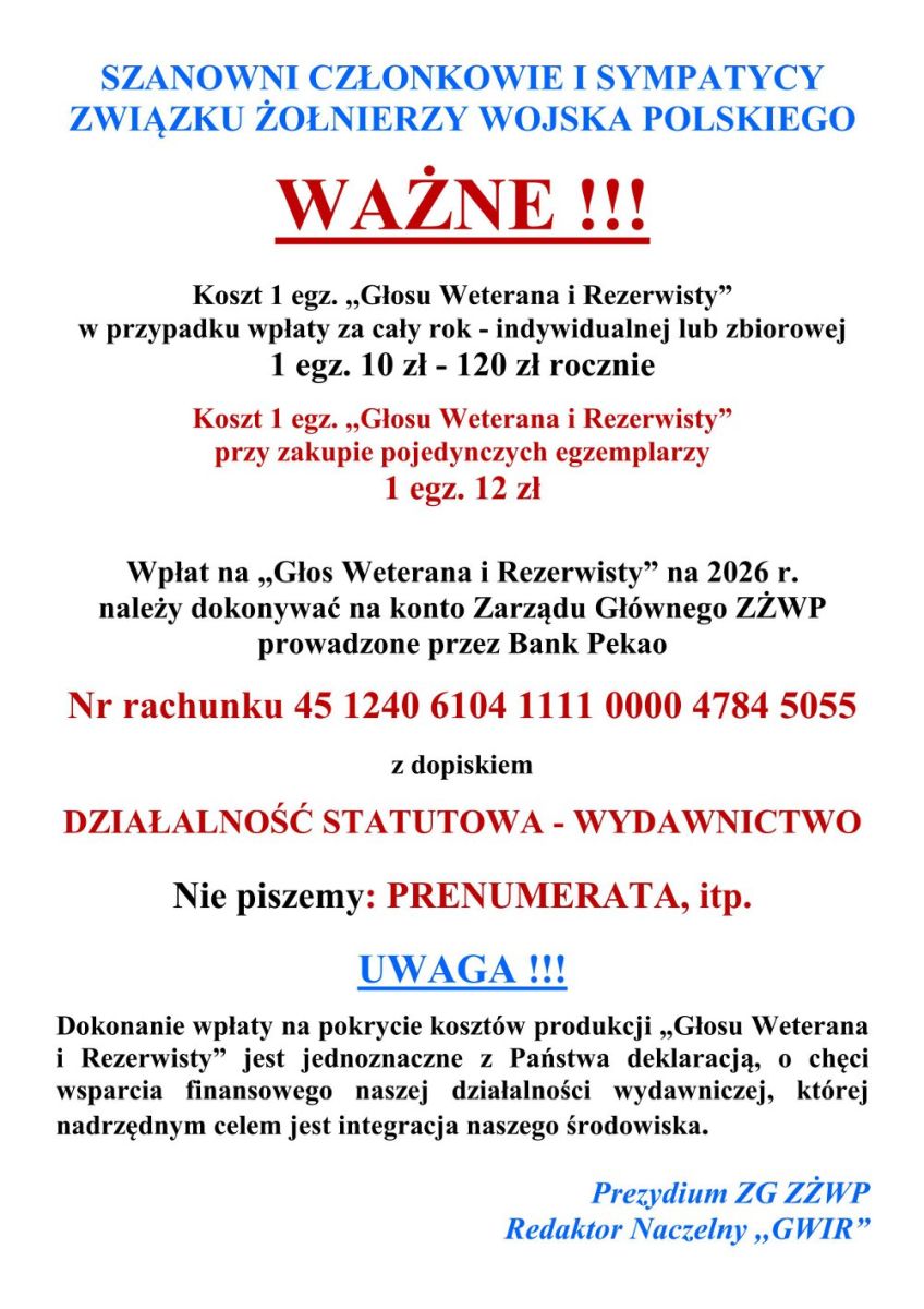 Przedstawiamy zasady dystrybucji „Głosu Weterana i Rezerwisty” na 2026 r.
