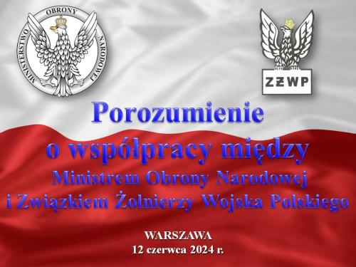 12 czerwca 2024 r. nadszedł długo oczekiwany dzień. W siedzibie Ministerstwa Obrony Narodowej podpisane zostało Porozumienie o współpracy między Ministrem Obrony Narodowej i Związkiem Żołnierzy Wojska Polskiego. Minister Władysław Kosiniak-Kamysz dotrzymał słowa danego podczas posiedzenia Sejmowej Komisji Obrony Narodowej w dniu 8 lutego 2024 r.