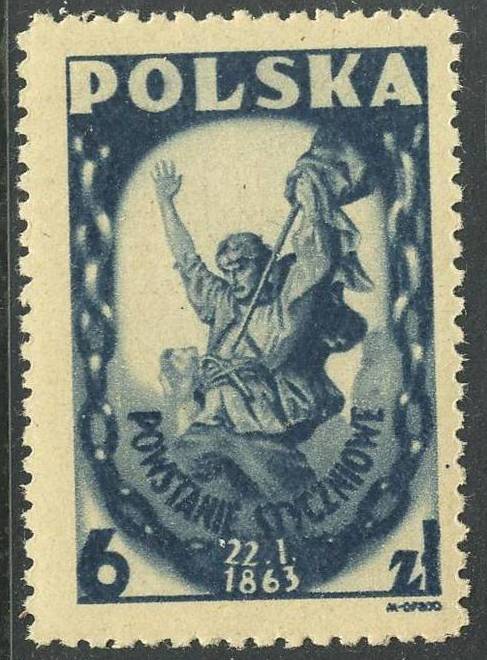 Po wojnie w 1946 r. w 83 rocznicę Powstania Styczniowego ukazał się znaczek Pocztowy z wizerunkiem powstańca z Powstania Styczniowego. Jest to fragment rysunku Artura Grottgera „Bój” z cyklu „Lithuania”. Wydanie to posiada wiele niedociągnięć drukarskich – oczywiście ku satysfakcji filatelistów.