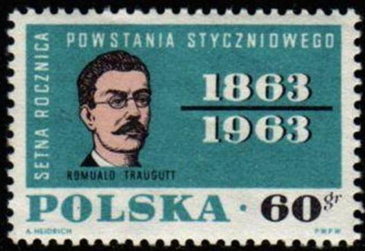 W 1963 r. w setną rocznicę Powstania Styczniowego Poczta Polska wydała kolejny znaczek. Widnieje na nim popiersie innego polskiego generała, Romualda Traugutta, dyktatora powstania. Wydanie to również zostało obarczone błędem drukarskim w nazwisku „Traugutt”.