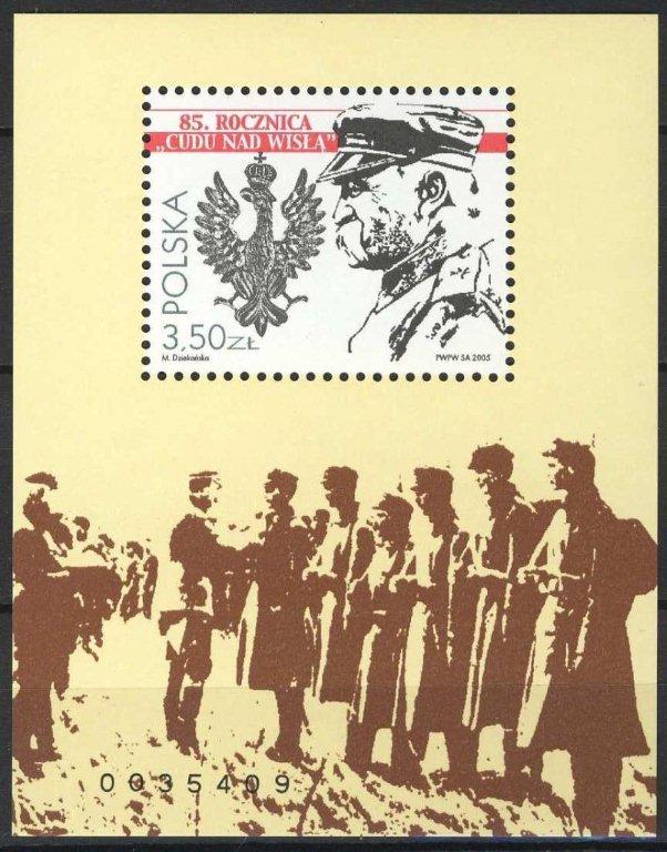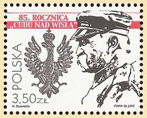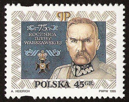 Pierwszy znaczek w oficjalnym wydaniu nawiązujący do Bitwy Warszawskiej pojawił się w 1995 roku. Upamiętniał on 75. rocznicę tego wydarzenia. Widnieje na nim popiersie Marszałka Józefa Piłsudskiego oraz Krzyż Wielki Orderu Virtuti Militari w obramowaniu generalskiego wężyka.