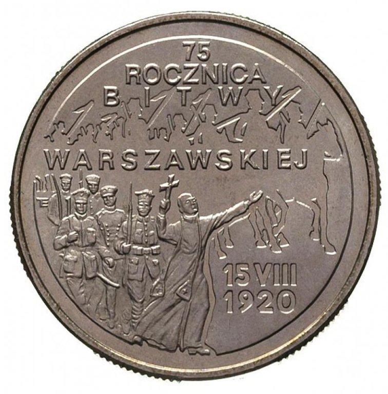 Obie monety, poza nominałem, posiadają taki sam stempel graficzny. Awers jest standardowy jak dla monet obiegowych, natomiast rewers przedstawia grupę żołnierzy piechoty, na której czele widoczna jest sylwetka księdza Ignacego Skorupki. Powyżej umieszczono stylizowaną grupę kawalerzystów. Na całej grafice rewersu rozmieszczono napis: „75 ROCZNICA BITWY WARSZAWSKIEJ 15 VIII 1920”.