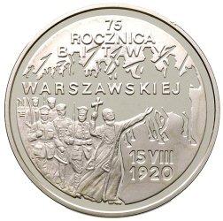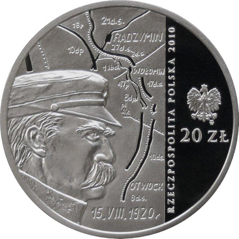 20 złotych w srebrze z tampodrukiem 3D.Grafika awersu przedstawia: - z prawej strony wizerunek orła ustalony dla godła Rzeczypospolitej Polskiej, pod nim nominał „20 ZŁ”, po lewej stronie orła prostopadle umieszczono napis: „RZECZPOSPOLITA POLSKA 2010”, z lewej strony, na tle stylizowanego fragmentu mapy, wizerunek twarzy Józefa Piłsudskiego z profilu, a u dołu data: „15.VIII.1920 r”. Rewers jest również bogaty w treści, a dodatkowo zastosowano najnowocześniejszą technikę 3D. Po lewej stronie czytamy rok „1920” oraz prostopadle umieszczony napis: „90. ROCZNICA BITWY WARSZAWSKIEJ”. Z prawej strony widoczny jest stylizowany wizerunek żołnierza polskiego z karabinem, na tle fragmentu obrazu Jerzego Kossaka „Cud nad Wisłą”.