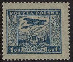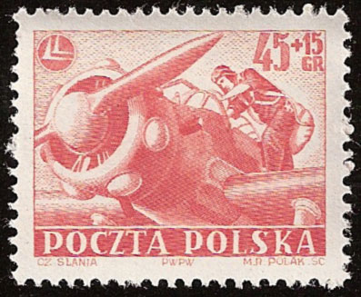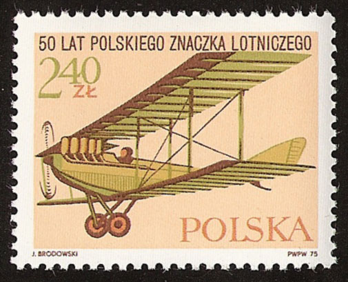 Pierwsze polskie znaczki pocztowe z wizerunkiem samolotu pojawiły się w 1925 roku. Cała seria stanowiła 9 znaczków o identycznej grafice, ale w różnych barwach i o różnych nominałach: 1, 2, 3, 5, 10, 15, 20, 30 i 40 gr. Wydanie to było przeznaczone na przesyłki lotnicze. Wydawca znaczka nie określił rodzaju samolotu. Kto wie? Może za model rysunku posłużyła zdobycz z terenów wyzwolonych lub też „składak” zmontowany z podzespołów pochodzących z różnych typów samolotów lub z dostarczonych wraków. Wiadomo, że Polacy zawsze byli pomysłowi i początkowo w lotnictwie używali też hybryd.