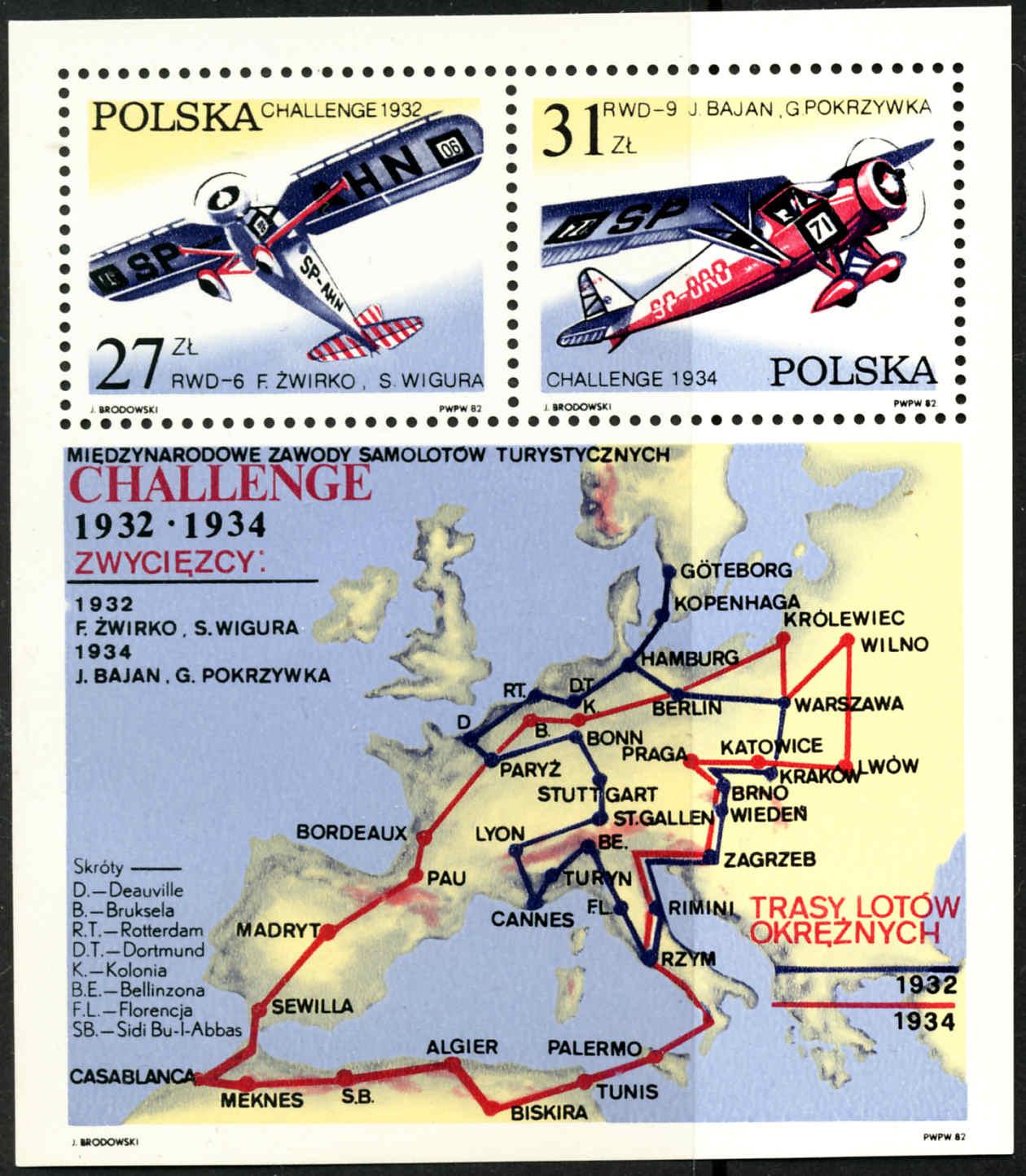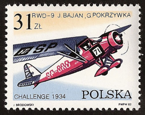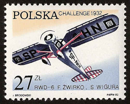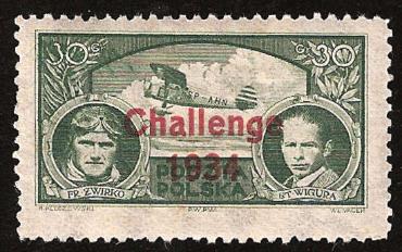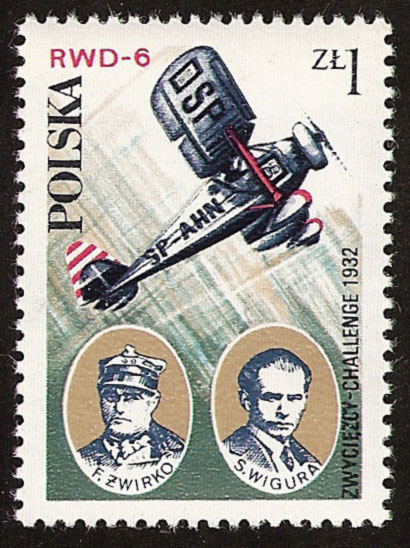 Pierwsze miejsce i puchar międzynarodowy dla Polski, jakie zdobyli por. pil. Franciszek Żwirko i inż. Stanisław Wigura w 1932 roku w zawodach „Challenge” było okazją do wydania znaczka okolicznościowego. Widoczny jest na nim samolot zwycięzców RWD-6 oraz sami bohaterowie.