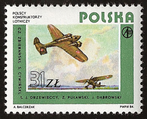 Znaczek pocztowy wprowadzony do obiegu w 1984 r., obok bombowca „Łoś” przedstawia również myśliwiec PZL P-7 (poprzednik PZL P-11) oraz nazwiska słynnych polskich konstruktorów lotniczych: Czesława Zbierańskiego, Stanisława Cywińskiego, Stefana Drzewieckiego, Zygmunta Puławskiego i Jana Dąbrowskiego. Myśliwiec PZL P-7 był dość przestarzałą maszyną w 1939 r. i duży ich procent został zniszczony w pierwszych dniach wojny.