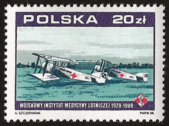 Do początków WIML nawiązuje znaczek pocztowy, wprowadzony do obiegu w 1988 r. w serii „70. Rocznica odzyskania niepodległości Polski”, przedstawiający dwupłatowe samoloty sanitarne produkcji francuskiej typu „Hanriot XIV” . Maszyny te zabierały pilota i chorego na noszach, który miał do swojej dyspozycji kabinę znajdującą się wewnątrz płatowca.