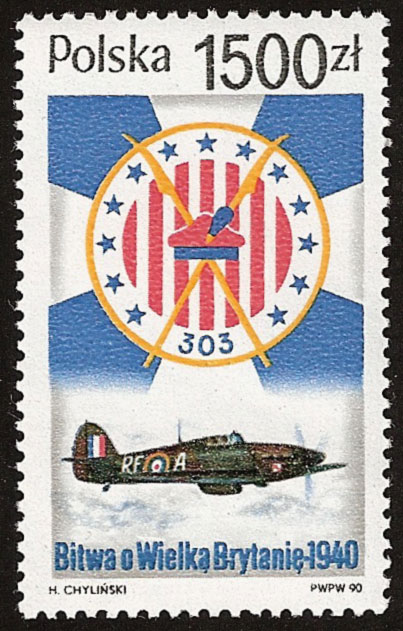W Polsce powojennej dopiero w 1990 roku Poczta Polska wprowadziła do obiegu znaczek bezpośrednio nawiązujący do udziału polskich pilotów w bitwie o Wielką Brytanię. Na znaczku widoczny jest samolot myśliwski „Hawker Hurricane” oraz godło polskiego dywizjonu myśliwskiego 303.