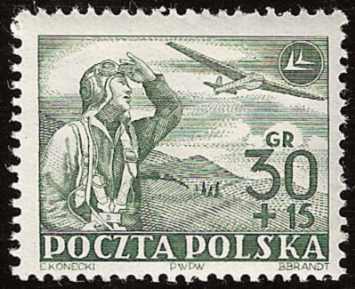 Właśnie 23 sierpnia 1952 r. wprowadzono do obiegu pocztowego serię trzech znaczków z okazji „Święta Lotnictwa”. Przedstawiają one: lotnika na tle podgórskiego krajobrazu patrzącego na szybowiec typu „Sęp”; samolot śmigłowy „Zuch-2” produkcji polskiej, był to samolot szkolno – akrobacyjny produkowany w Łodzi oraz skoczków spadochronowych na tle nieba.