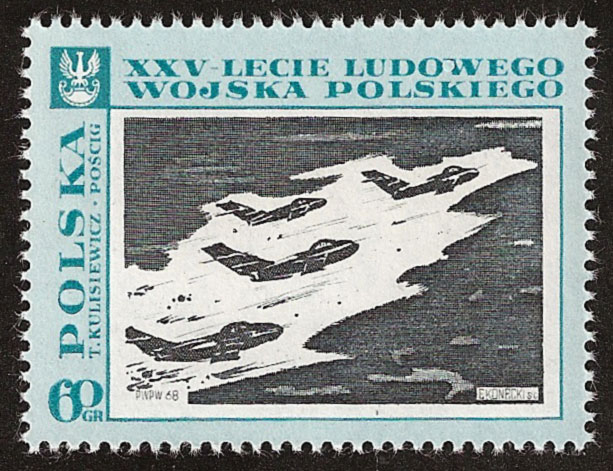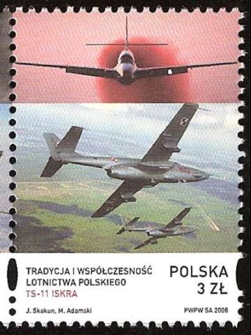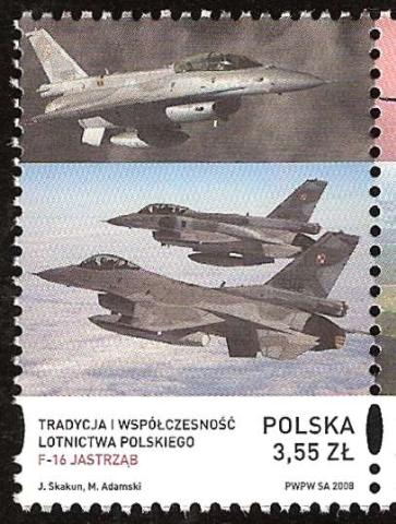 W dniu 31 marca 2008 r. zbiory filatelistyczne zaszczyciły dwa znaczki wydane w serii: „Tradycja i współczesność lotnictwa polskiego”. Na jednym z nich widzimy samolot szkolno – treningowy TS-11 „Iskra” zaprojektowany w latach 50. Była to pierwsza polska konstrukcja lotnicza napędzana silnikiem odrzutowym. Jego produkcji zaprzestano w 1987 r. Na drugim znaczku zaprezentowano samolot wielozadaniowy F-16 „Jastrząb”, od 8.11. 2006 r. w polskich barwach. F-16 „Fighting Falcon tłum. ang. Walczący Sokół” w Polsce otrzymał nazwę „Jastrząb”, dla odróżnienia od używanego w polskim lotnictwie śmigłowca wielozadaniowego PZL W-3 Sokół.