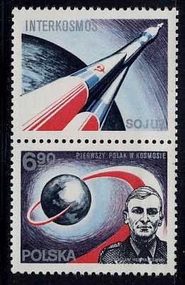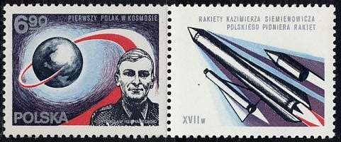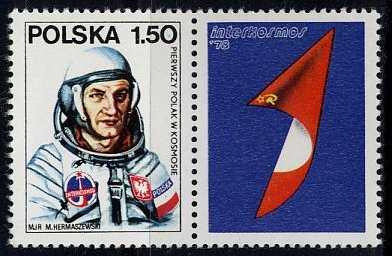 Za sprawą kontaktu z kosmosem, od 27.06.1978 r. osobą rozpoznawalną wśród Polaków stał się mjr pil. (obecnie gen. bryg.) Mirosław Hermaszewski, który odbył lot w kosmos na pokładzie statku „Sojuz-6”. Start miał miejsce na kosmodromie Bajkonur, a po ośmiu dniach doszło do lądowania w Kazachstanie. Poczta Polska miała wyjątkowo duży udział w rozsławieniu naszego pilota wydając dwa znaczki z jego popiersiem o nominałach 1,50 i 6,90 zł. Ponadto znaczki wprowadzono do obiegu z przywieszkami w różnych konfiguracjach, co jest szczególnie istotne dla filatelistów. Znaczek o nominale 1,50 zł wydrukowano z dwiema przywieszkami przedstawiającymi replikę plakatu Antoniego Cetnarowskiego „Interkosmos-78” oraz układ heliocentryczny Mikołaja Kopernika, natomiast drugi znaczek posiada przywieszki przedstawiające rakiety Kazimierza Siemionowicza, artylerzysty i inżyniera, pioniera polskiego rakietnictwa w XVII wieku oraz radziecki statek kosmiczny typu „Sojuz”, na którym odbył się lot. Ponadto oba znaczki z przywieszkami zostały wydrukowane w formie dwóch bloków filatelistycznych.