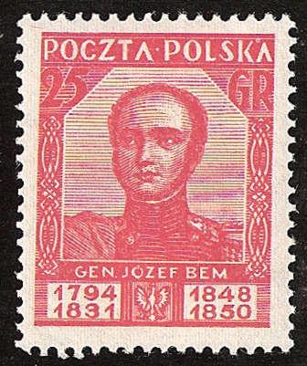 Pierwszy znaczek z podobizną generała pochodzi z początków powstania II Rzeczpospolitej. Jest to replika portretu z natury płk. artylerii w mundurze ze szlifami generalskimi. W ten sposób upamiętniono sprowadzenie z Turcji zwłok generała Bema i złożenie w mauzoleum w Tarnowie.