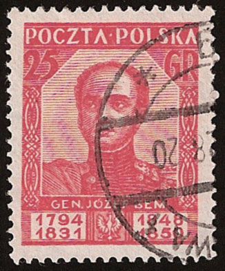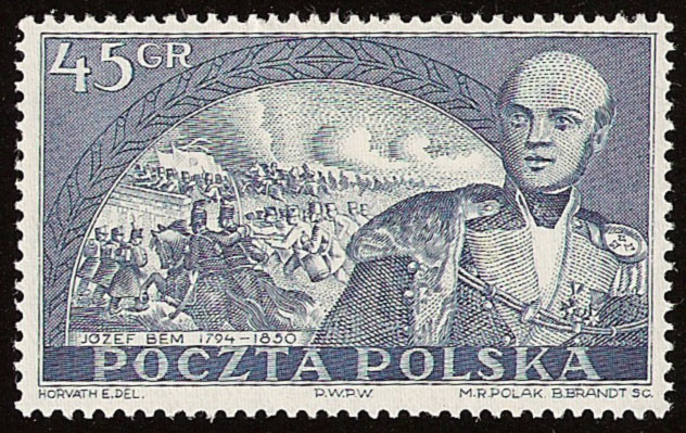 Po wojnie w 1950 roku Poczta Polska uczciła setną rocznicę śmierci generała (10.12.1850 r.) wydając znaczek z wizerunkiem polskiego artylerzysty na tle sceny bitewnej (1849 r.) pod wsią Piski w Siedmiogrodzie. Wówczas to oddział gen. J. Bema zdecydowanym kontratakiem na pozycje wojsk austriackich zmusił je do odwrotu.