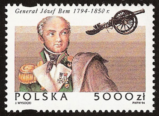 Pod koniec minionego stulecia przybył filatelistom znaczek wydany z okazji 200. rocznicy urodzin generała trzech narodów. Obok sylwetki gen. J. Bema, także prekursora artylerii rakietowej, bowiem zajmował się on również pracą naukową i wyniki swych badań zawarł w wydanej w 1819 r. pracy pt. „Uwagi o rakietach zapalających”, widnieje działo armatnie z XIX wieku.