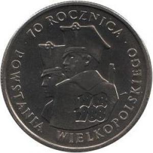 W 1988 roku dla upamiętnienia 70. rocznicy Powstania Wielkopolskiego Mennica Polska emitowała obiegową monetę o nominale 100 złotych wybitą w stopie miedziano-niklowym. Przy standardowym awersie, rewers wyróżnia się profilem dwóch powstańców, datami „1918 i 1988” oraz okrężnym napisem „70 ROCZNICA POWSTANIA WIELKOPOLSKIEGO”.