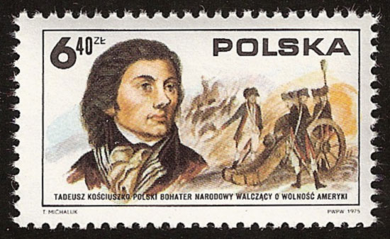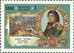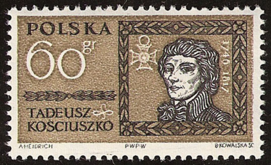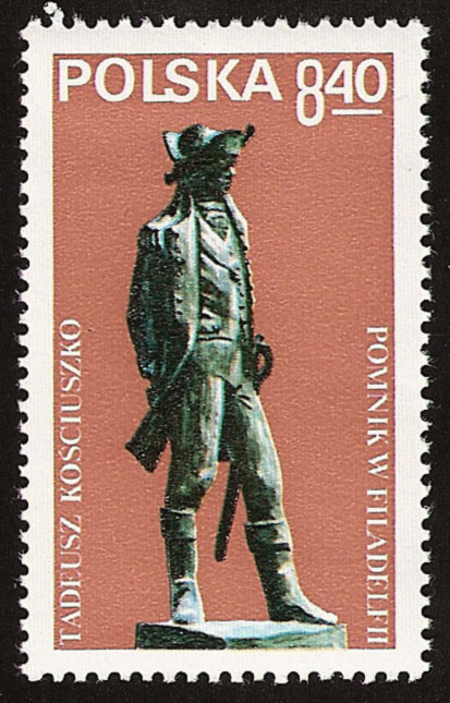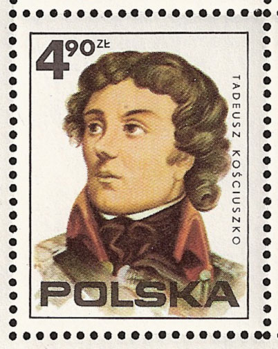 W filatelistyce Tadeusz Kościuszko często przedstawiany jest, jako bojownik o wolność i demokrację.