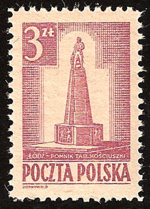 Postać Tadeusza Kościuszki oraz inne formy jego wizerunku uświetniają cokoły wielu pomników w kraju i na świecie. Stały się również tematem dla ludzi pióra, kultury i sztuki. Znaczek pierwszy od lewej przedstawia pomnik na Wawelu zniszczony w czasie II wojny światowej. Po wojnie został odbudowany i ponownie odsłonięty w 1975 roku. Na znaczku kolejnym widoczny jest pomnik Tadeusza Kościuszki odsłonięty w Łodzi w 1930 roku. Podczas wojny uległ zniszczeniu, ale niestety, nie doczekał się odbudowy.