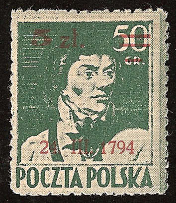 Opis pierwszego znaczka od lewej, wydanego w 1945 roku w 151. rocznicę insurekcji, brzmiał: „Wizerunek Tadeusza Kościuszki, uczestnika wojny z Rosją, Naczelnika antyrosyjskiego powstania 1794 roku”. Kolejny znaczek został wprowadzony do obiegu w 1961 roku w serii „Wielcy Polacy”. Dwa znaczki poniżej Poczta Polska wydała sześć lat później, w 150. rocznicę śmierci naszego bohatera narodowego.