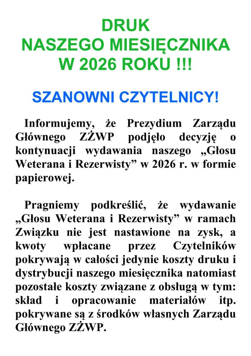 Przedstawiamy zasady dystrybucji „Głosu Weterana i Rezerwisty” na 2026 r.