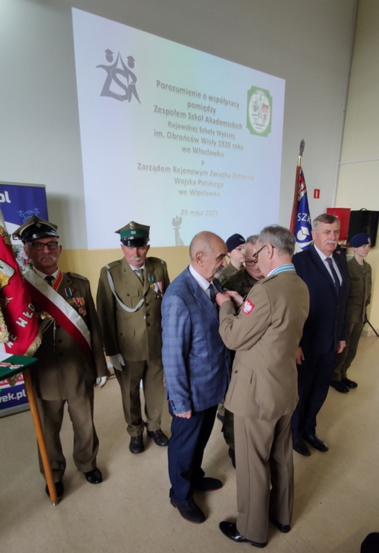 Dzień Weterana Działań poza Granicami Państwa oraz Międzynarodowy Dzień Uczestników Misji Pokojowych ONZ, przypadające w dniu 29 maja 2025 r., były okazją do podpisania porozumienia o współpracy między Zarządem Rejonowym Związku Żołnierzy Wojska Polskiego we Włocławku a Zespołem Szkół Akademickich im. Obrońców Wisły 1920 roku.