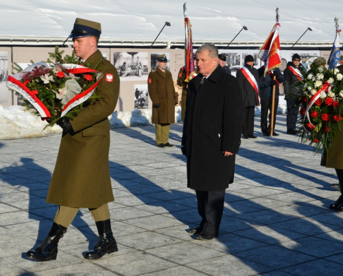 Podkreślił, że w każdą rocznicę pamiętnych wydarzeń oddajemy hołd poległym, zmarłym, a także żyjącym żołnierzom uczestnikom walk. Oddajemy hołd żołnierzom 1 Armii Wojska Polskiego, którzy złożyli ofiarę krwi w walkach o Warszawę, żołnierzom państwa podziemnego, w tym żołnierzom Armii Krajowej i innych formacji zbrojnych, którzy w latach okupacji oraz krwawych dniach Powstania Warszawskiego pragnęli wyzwolić stolicę dla niepodległej Polski. Składamy pokłon cywilnej ludności Warszawy, która w mrocznych latach okupacji poniosła ogromną ofiarę życia i cierpień. Zwrócił uwagę na potrzebę uświadomienia sobie, że według najnowszych badań czasie II wojny światowej w Warszawie straciło życie ponad 680 tys. ludzi. Nie możemy zapomnieć o ofierze, jaką złożyli żołnierze państw alianckich, niosący pomoc walczącej Warszawie. To dla upamiętnienia ofiary wszystkich wymienionych pochylimy nasze sztandary, by oddać cześć wszystkim ofiarom wojny, prześladowań i represji.