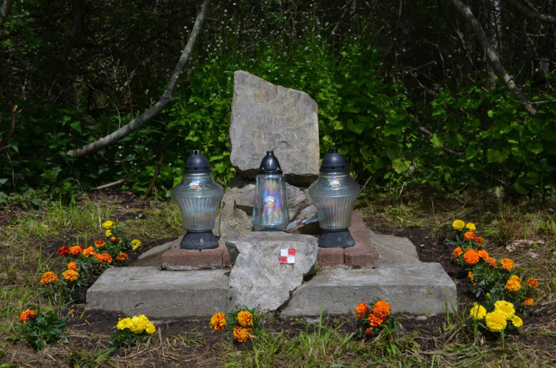 W 9 rocznicę tragicznego wypadku żona śp. ppor. pilota Andrzeja Wdziękońskiego z pomocą bliskich swoich przyjaciół z Dęblina postanowiła zaznaczyć to miejsce niewielkim kamieniem z piaskowca przywiezionym spod Kazimierza Dolnego. Najpierw kamień został umiejscowiony przy słupie energetycznym aby, nie przeszkadzał w pracach polowych właścicielowi gruntu. Po roku udało się pozyskać stosowne zgody na usadowienie kamienia dokładnie w miejscu uderzenia samolotu w ziemię i w 10 rocznicę katastrofy zainstalowano go na betonowym fundamencie. Prace te wykonali przyjaciele cywile z dalekiej Lubelszczyzny. Na kamieniu tym wyryto wtedy tylko prosty napis ze stopniem wojskowym, imieniem i nazwiskiem by WSKRZESZAĆ PAMIĘĆ o uśmiechniętym młodym morskim pilocie, którego wielką pasją było lotnictwo i służba w Marynarce Wojennej.