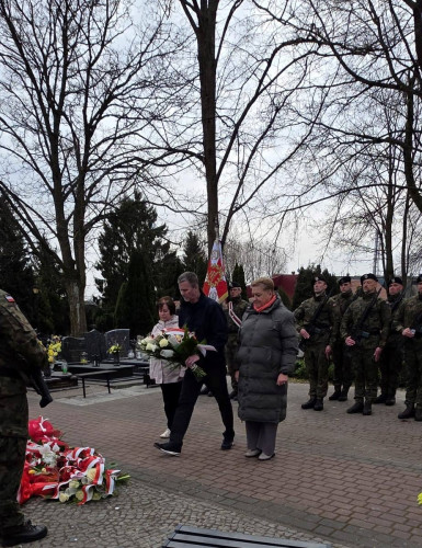 W imieniu usteckiej społeczności oraz władz samorządowych kwiaty pod Krzyżem Katyńskim złożyli zastępca burmistrza Bartosz Gwóźdź-Sproketowski oraz przewodniczący Rady Miasta Krzysztof Korniluk.